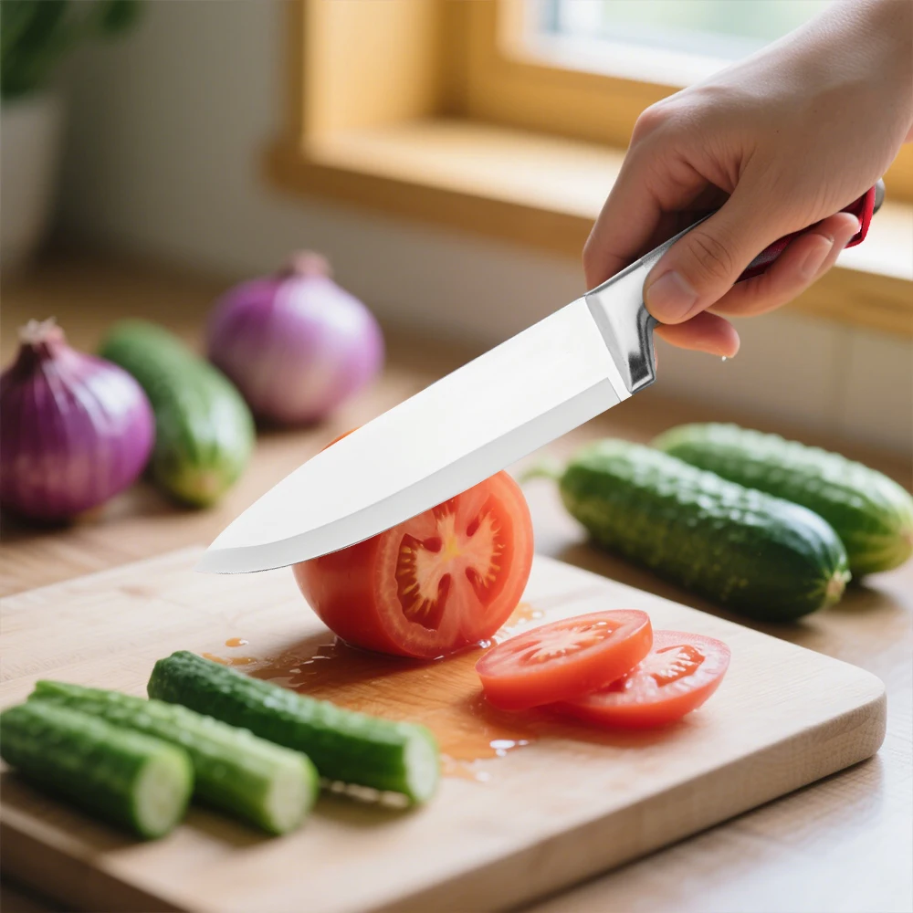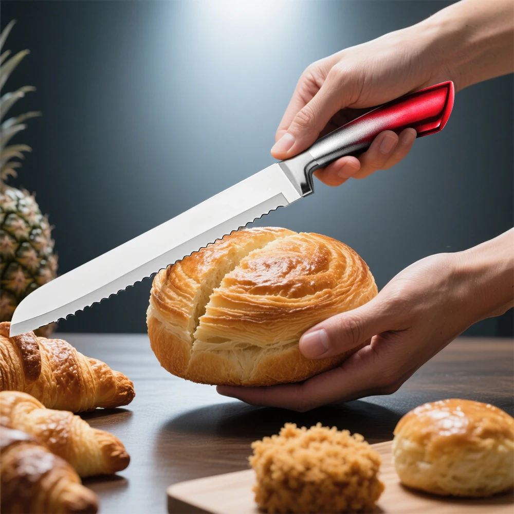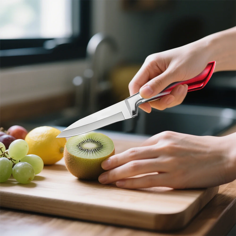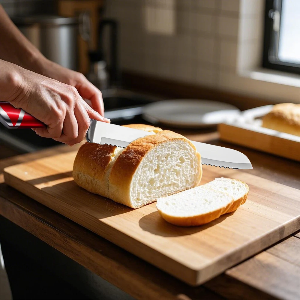 High Quality--This set of knives is made of high-carbon German stainless steel, each is finely ground by artisans by hand for durability, the V-shaped cutting edge is very sharp, and has a hardness that resists stains and corrosion. This set of sharp stainless steel knives will help you tackle every cutting task in the kitchen with ease.